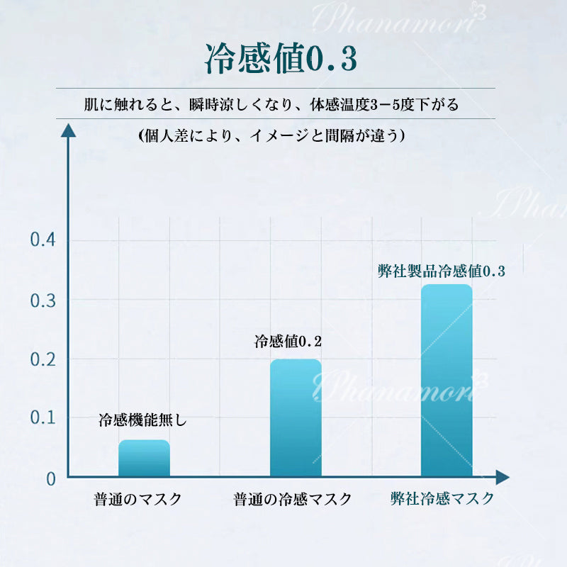 ■材質:メルトブローン式不織布、最新の3.0冷感素材(冷感値0.3)